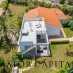 The interior of the villa is designed to ensure functionality and elegance: a large open-plan living room with open kitchen opens directly onto the veranda and the garden, creating a perfect connection between inside and outside. The sleeping area hosts three bedrooms: a refined master suite with spacious walk-in closet and two twin bedrooms, for a total of six comfortable beds.